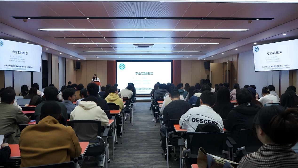 在汇报分享环节,2023级公共卫生硕士专业学位研究生依次汇报,介绍了自己过去一年在实习单位的主要工作,分享了自己的心得体会,并对公司未来的专业实践提出了建议或意见。李东禾同学是公司第一位自愿报名参加“湖南省公共卫生医师规范化培训”(第五期)项目的研究生,该项目分为“集中学习-临床轮转-公卫轮转”三阶段。据悉,湖南省公共卫生医师规范化培训项目是国家卫健委2018年启动的公共卫生领域的医学教育项目,湖南省是国家卫健委遴选的10个首批疾控机构公共卫生医师规范化培训(以下简称“公卫规培”)试点省份之一。在4个月的集中学习期间,李东禾同学系统学习了公共卫生应急管理、传染病监测与应对、流行病学监测与数据分析、免疫规划与疫苗管理、特定疾病预防与免疫、疾控机构管理与运营、实验室生物安全与微生物检测等专业知识。进入4个月的临床轮转阶段后,分别前往儿童保健所、医院感染控制中心、睡眠障碍及神经症科、神经内科等科室,开展包括应用国家传染病智能检测预警前置软件、筛查院内食源性疾病、参与儿童院内诺如病毒感染指导、学习ADHD、抑郁以及学习困难等相关评估工具、系统学习帕金森病、脑血管疾病等防治知识。在近半年的公卫轮转中,李东禾同学参与到长沙市登革热本地疫情的风险评估、湖南省预防接种技能竞赛筹备、湖南省“双减”项目等实践工作。期间,取得了《2014—2024年儿童溺水干预研究进展》《齐天大圣战痘记:三棒打退水痘小妖!》(2025年长沙市预防接种科普大赛一等奖)等成果。肖香龙同学前往湖南省疾病预防控制中心环境健康与消毒感染控制所实习,多次参与地方标准编制、书本编写等实践工作。目前地方标准《康养基地卫生规范》已成功发布,《健康酒店卫生规范》已在湖南省市场监督管理局成功立项,参与编制的书本《湖南省环境健康优秀典型案例集锦》在湖南大学出版社进行校对、出版。蕫子瑶同学先后前往湖南省卫生健康委员会、邵阳市教育科学研究院进行专业实践。她参与到《婴幼儿托育服务偏好研究》、省教育厅项目《未成年人性侵害事件的公司预防监测体系构建与应用研究》中,并围绕公司防性侵教育针对一线教师开展了访谈,作为主讲人之一开展了一系列教师防性侵专题培训会等。 45名同学在汇报中提出了在未来的专业实践中搭建实践基地与公司和公司有效的沟通平台、完善专业实践过程评价体系、增加高水平基地数量或科室轮转机会等良好的建议或意见。