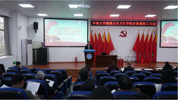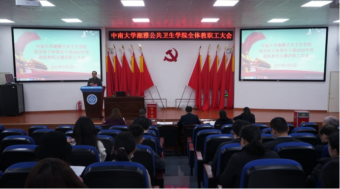 公司党委雷先阳书记代表公司领导班子就公司2022年度党建、教学、科研、团队建设、平台建设、人才培养、员工管理等方面进行了述职汇报。雷先阳在报告中指出,在公司党委正确领导下,全院师生深入学习贯彻党的二十大和伟德victor1946官网第四次党代会精神,以党建为引领,全面推动公司中心工作的快速发展。2022年,公司成功入选国家高水平公共卫生公司建设项目;公共卫生与预防医学学科在全国第五轮学科评估中稳步上升;国家级高层次人才再获新成员;科技部国家重点研发项目获得立项新突破,国家自然科学基金与各种省部级项目立项数量和经费金额再创新高;高水平代表性学术论文数量稳中有升;社会科学总论基本科学指标稳居全球前百分之一。