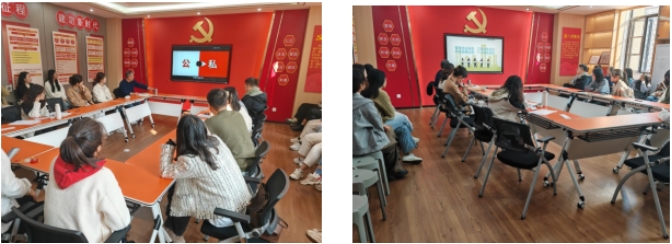 (图为研三党支部党员观看《公与私》廉洁主题教育短片)