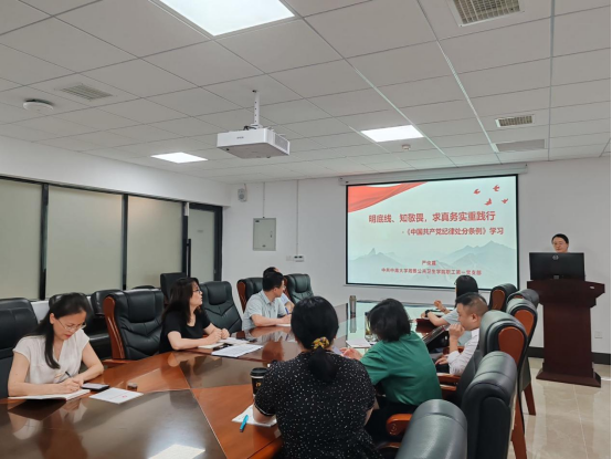 2024年6月19日下午,流行病与卫生统计学系教职工在公司B328会议室召开了主题为“明底线、知敬畏,求真务实重践行”的《中国共产党纪律处分条例》专题学习会,雷先阳书记及系全体教职工参会,系副主任、职工第一党支部书记严俊霞老师主持会议。