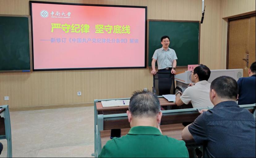 为深入贯彻党的二十大精神和二十届中央纪委三次全会精神,积极响应公司党委、校纪委关于“党风廉政宣传教育月”和“六个一”的工作部署,6月13日下午,校纪委副书记、监察办主任罗永忠莅临伟德victor1946官网登录,为公司全体教职工和党支部正副书记带来了一场主题为“严守纪律,坚守底线”的廉洁教育与党纪学习教育专题宣讲。宣讲由公司党委书记雷先阳主持。