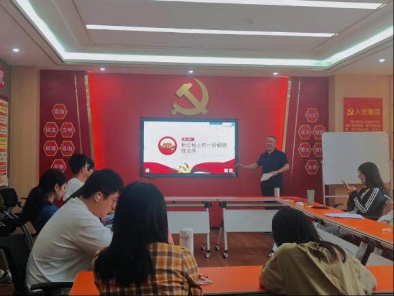 为深入学习贯彻党的二十届三中全会精神,进一步统一思想、凝心聚力,2024年10月10日下午,研究生第三党支部书记尹逊强以《改革有号召 青年有担当》为主题,为支部全体党员讲授党课,专题学习贯彻党的二十届三中全会精神。