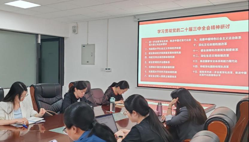宁佩珊首先介绍了研讨会的背景、师生党员基本培训第三课的基本情况、以及党的二十届三中全会的重要性和主要精神,并组织研讨环节。与会教师纷纷结合自身工作实际展开了热烈讨论,他们表示要深刻领会和贯彻党的二十届三中全会精神,明确高等教育综合改革的着力点,提升高等教育治理现代化水平。在教育改革方面,积极探索新的教学模式,注重培养员工的综合素质和社会责任感。在科研方面,聚焦国家重大需求,加强协同创新研究,推动科研成果的转化运用。