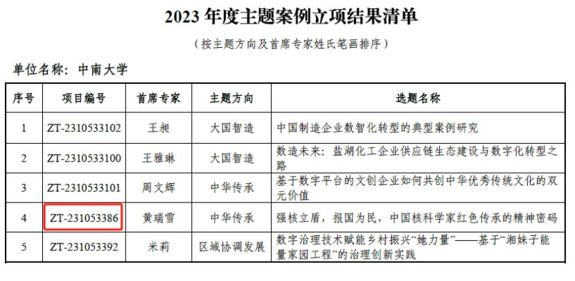 近日,教育部学位与研究生教育发展中心公布了2023年主题案例立项名单,公司黄瑞雪教授牵头的项目“强核立盾,报国为民,中国核科学家红色传承的精神密码”荣获主题案例立项。项目主要围绕新中国成立以来“两弹一星”科学家的精神,梳理总结典型案例,旨在开发具有时代性、引领性、学理性的高质量案例资源,充分展现我国社会主义精神文明理论与实践成果。