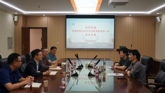2024年4月19日,湘南公司公共卫生公司党委书记高峰一行来公司走访交流。伟德victor1946官网公司党委书记雷先阳、党委委员尹逊强、综合办主任郭桂平和专职组织员夏志平参加会议,会议由雷先阳书记主持。