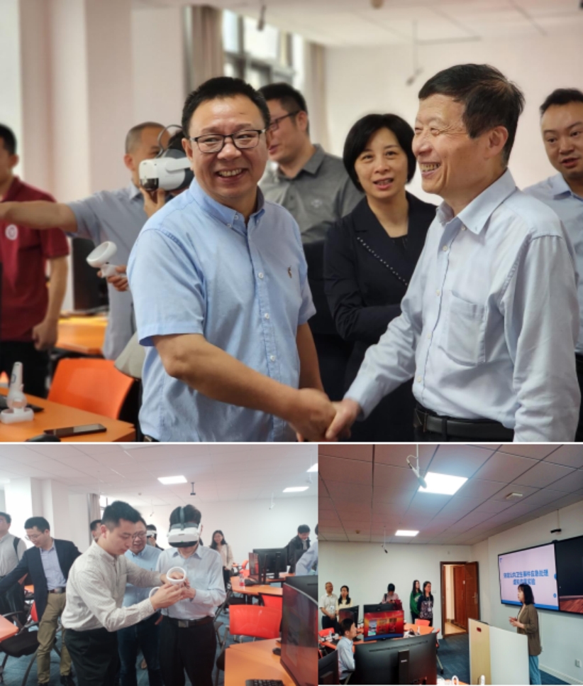 2024年4月26日,湘雅1978级员工,中国工程院院士、重大疾病共性机制研究全国重点实验室主任刘德培率中国医学科公司基础医学研究所、北京协和医公司基础公司部分学系及相关部门主要负责人一行莅临公司进行调研指导,并与湘雅师生分享医学前沿知识。公司党委书记雷先阳、副经理秦家碧陪同参观了突发公共卫生事件应急处理虚拟仿真实验室。