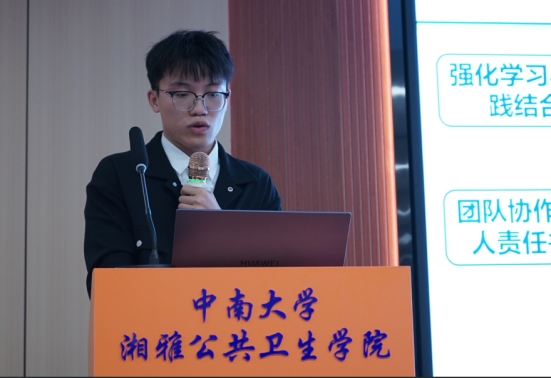 在汇报分享环节,2022级公共卫生硕士专业学位研究生依次汇报,介绍了自己过去一年在实习单位的主要工作,分享了自己的心得体会以及对公司未来进行的专业实践提出了宝贵的建议或意见。余意同学在湖南省妇幼保健院医学遗传科进行专业实践时,学习到了有关胎儿常见出生缺陷疾病、产前筛查与产前诊断技术的相关医学知识,自主协助导师和校外导师的多个国家级、省级科研项目的申报,提升了专业能力,推进了课题研究进展,收获颇多。张杨同学前往伟德victor1946官网湘雅医院皮肤科实习,积极参与了疫情政策与急诊就诊人次的时间序列分析、老员工与老年人的皮肤病流行病学调查项目,意识到了自身需要加强专业学习与实践的结合,团队协作应当与个人责任并重,需增强工作主动性。谢怡媚同学在邵阳市妇幼保健院自主实现了科室的轮转实习,积极推进保健院孕妇公司的建设。她表示专业实践不仅丰富其医学知识,而且还增强了其对妇幼保健事业的热爱和对工作的责任感。唐嘉鹏同学先后前往国家卫生健康委卫生发展研究中心、湖南省疾病预防控制中心进行专业实践,参与了高值医用耗材治理改革政策研究、北京市适宜人工智能医疗技术遴选研究、2024年员工营养健康状况连续性监测现场调查、MPH教材《公共卫生专业的岗位胜任力培养》公司卫生章节部分内容的编撰等多项科研活动,得到多位带教老师的高度认可,专业知识、科研能力、协调组织能力多方面得到提高。 48名同学在汇报中相继提出了在未来的专业实践中增加实践基地的多样性、不断完善专业实践过程评价体系、增加科室轮转机会、统一安排实习内容、结合岗位招聘需求完善优化专业实践内容等良好的建议或意见。大家共同期待能够在公共卫生领域开拓出湘雅公卫人的新天地!