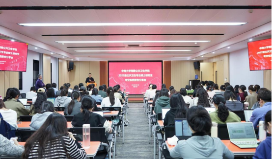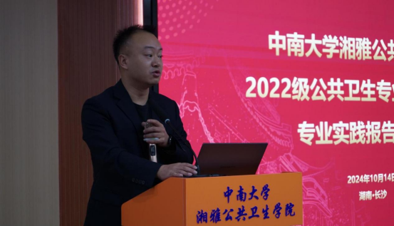 秦家碧副经理在会上强调了公共卫生硕士专业学位研究生专业实践的重要性。他指出,国家战略层面上需要培养高层次应用型高水平公共卫生人才,以应对突发公共卫生实际问题,新冠疫情的暴发更加凸显了公共卫生医师的重要性。目前公司正在探索与湖南省疾病预防控制中心开展公共卫生医师规范化培训项目,根据公共卫生硕士培养目标,科学地融入专业实践内容,系统性地重点培养理论与实践相结合的复合型公共卫生人才。他鼓励同学们深入实践,不断探索,充分掌握公共卫生领域的核心技能,形成自己在该领域的独有的优势特色,为未来的职业生涯做好铺垫。