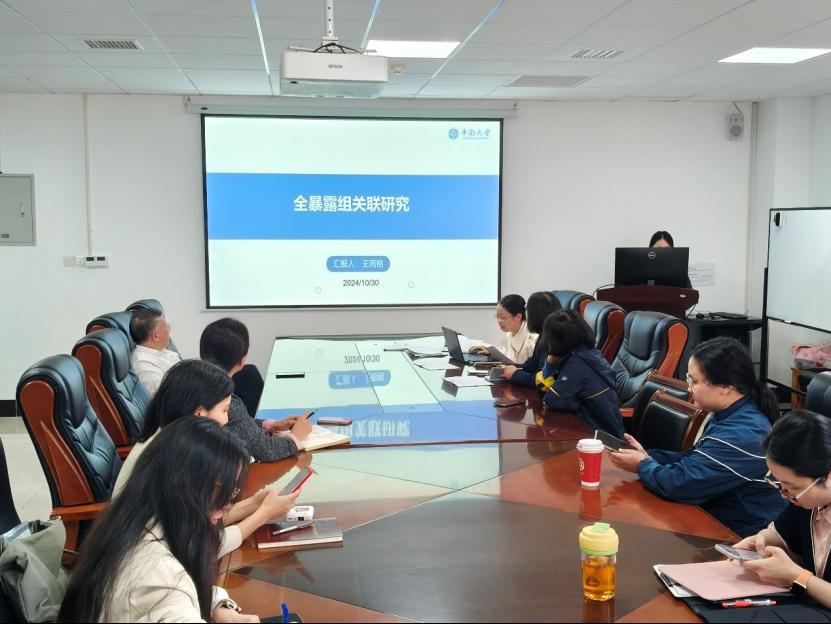 业务学习阶段,该系硕士研究生王雨格介绍分享了暴露组学研究的最新进展,参会教师及研究生认真学习后进行了热烈讨论。