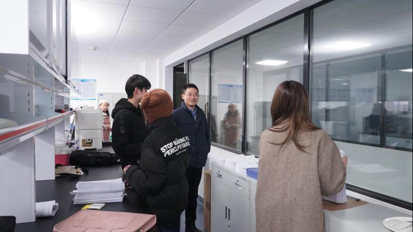 检查组一行首先来到公司的实验室区域,详细查看了实验的样品储存、安全实施以及实验室安全制度和责任落实情况。雷先阳书记强调,实验室是教学和科研的重要场所,必须严格落实各项安全措施,确保师生安全。
