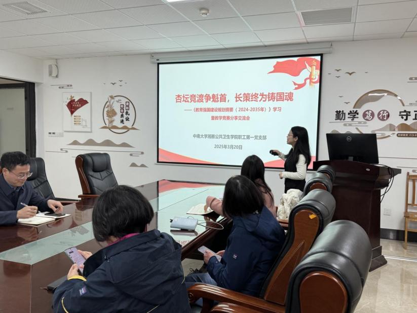 2025年3月20日下午,流行病与卫生统计学系全体教职工齐聚公司B328会议室,召开了一场主题为“杏坛竞渡争魁首,长策终为铸国魂”《教育强国建设规划纲要(2024-2035年)》学习暨教学竞赛分享的交流会。本次会议由系主任吴心音主持,公司党委书记雷先阳亲临现场并给予指导。