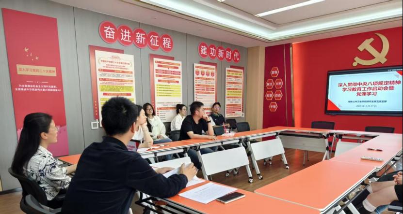 为深入贯彻中央八项规定精神学习教育,研究生第五党支部于2025年3月27日在院210会议室召开深入贯彻中央八项规定精神学习教育工作启动会暨党课学习,会议由支部书记张伟主持,公司党委委员/副经理李杏莉出席指导并授课,支部全体党员同志参加会议。