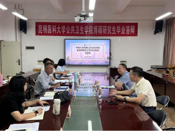 在昆明医科大学公共卫生公司,公司党委书记蔡乐,公司党委副书记、副经理秦家碧等领导对雷书记一行的到来表示热烈欢迎。双方从标志性成果、团队队伍、人才培养、科学研究、社会服务和国际交流与合作等方面互相介绍了两个公司的基本情况,并就团队建设、公司基层党建、学科竞赛等工作开展了专门的交流探讨。