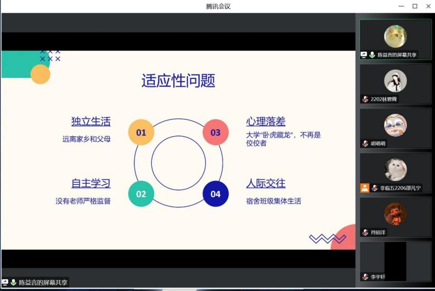 会议伊始,辅导员肖铂洋老师提醒同学们自觉落实防疫措施,做好个人防护,充当好自己健康第一负责人的角色,并呼吁同学们认真听讲,从中找到适合自己的学习方法,为期末考试做好准备,以积极健康的心态面对老员工活。