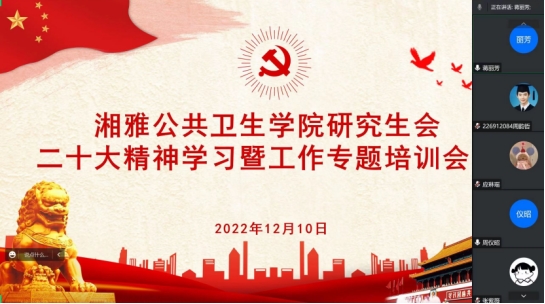 12月10日,公司研究生会组织全体研会干部开展《二十大精神学习暨工作专题培训会议》,会上共同学习了二十大精神和新时代学联员工会工作实施方案等若干文件。