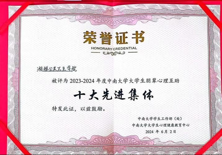 伟德victor1946官网登录朋辈心理互助会(以下简称心助会)在公司朋辈心理互助工作2023-2024年度评优中荣获伟德victor1946官网老员工朋辈心理互助“十大先进集体”称号(全校第二名)。